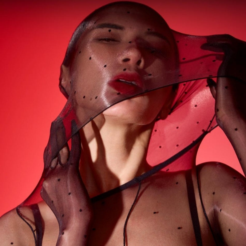 Aurora-kissed dotted sheer flows like liquid light, wrapping the body in a second-skin glow that feels almost unreal. Ultra-fine 1D fabric melts against the curves, while glossy highlights catch every shift of movement. It doesn’t just reveal — it illuminates, turning subtle transparency into pure visual temptation.