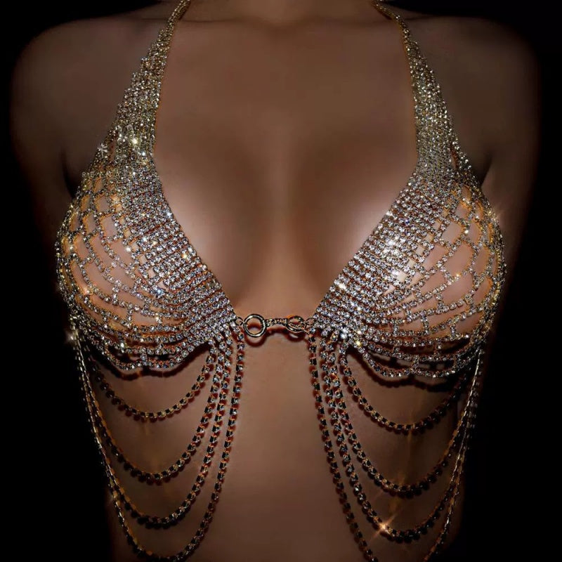 Cutout lines that shimmer with every movement, liquid-like chains draping the body in pure temptation. This isn’t lingerie meant to hide — it’s crafted to glow, captivate, and command attention.
