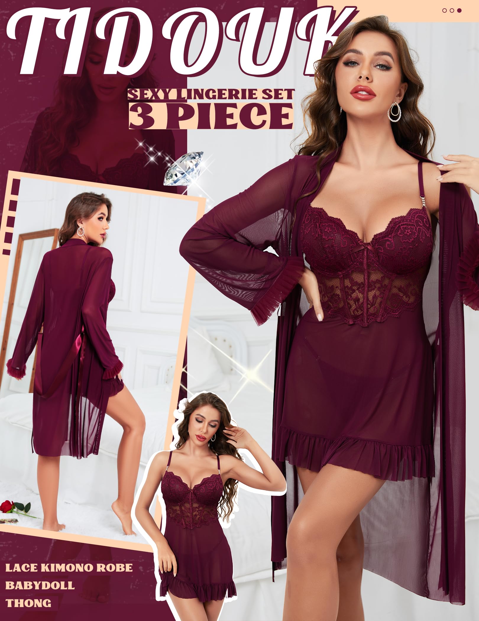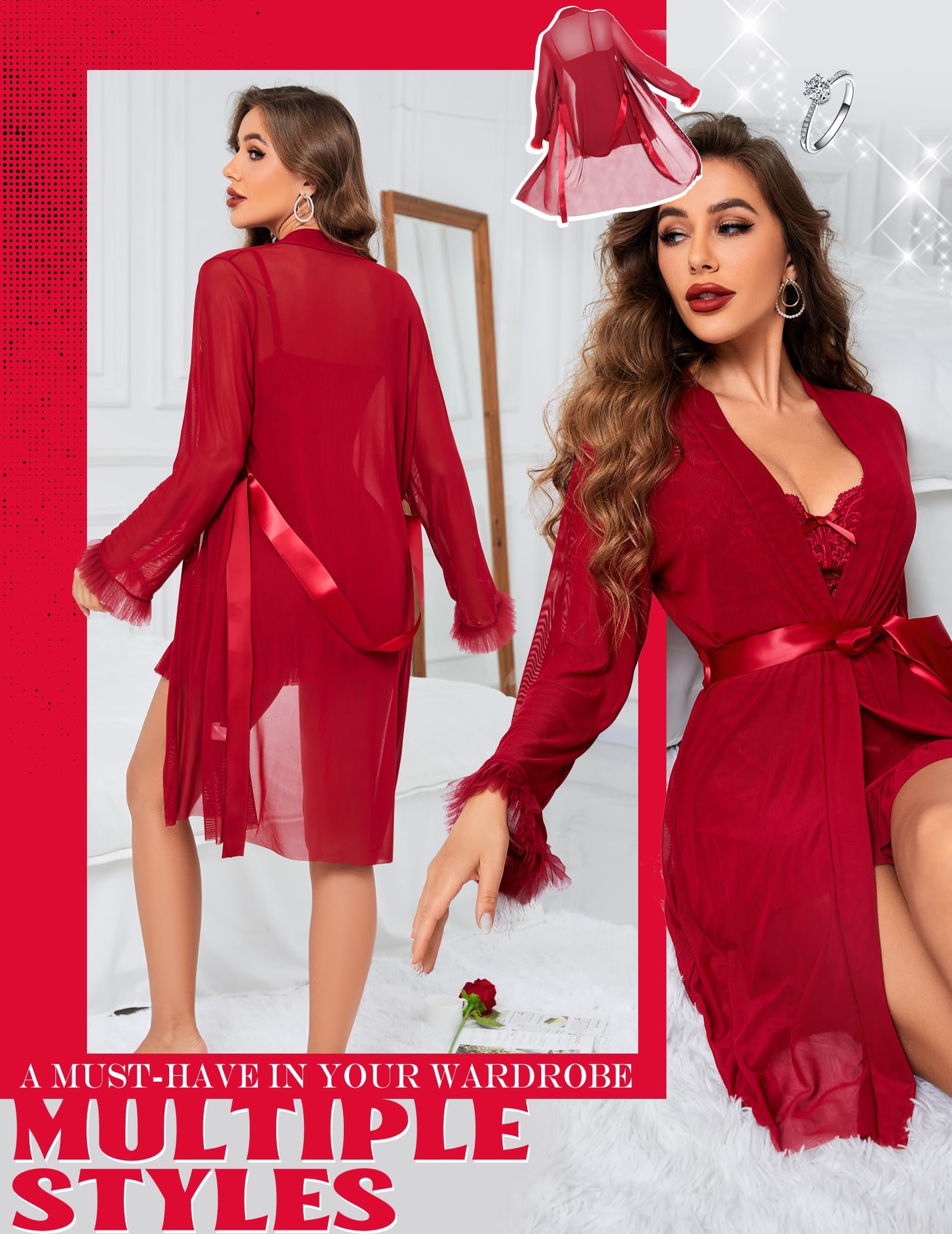 The moment this lace skims your skin. the mood tilts. The sheer fabric glows against your shape. the open-front robe drifting just enough to hint at what’s underneath. It doesn’t beg for attention—it commands it. turning every step into a quiet. irresistible dare.